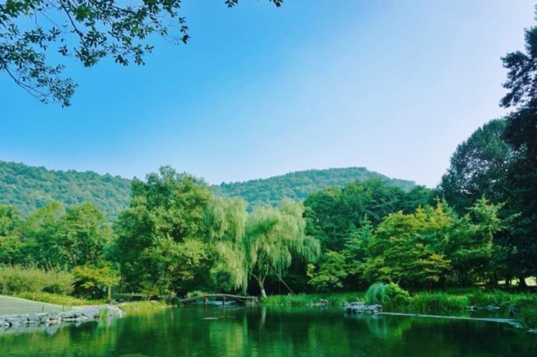 从苏堤对面的东门进去,不远就是一块大草坪,每天早上都有不少人来此晨练。草坪上有一座充满异域风情的大风车,是太子湾公园的标志。从这里开始,沿着公园内的栈道往西走,一路都是郁郁葱葱的树林和花花草草,还有蜿蜒而过的溪水、石桥,景色非常美。公园西侧还有一座小教堂,俏皮又浪漫。和家人朋友一起来这里散步、拍照,或者随意走走逛逛感觉非常好。