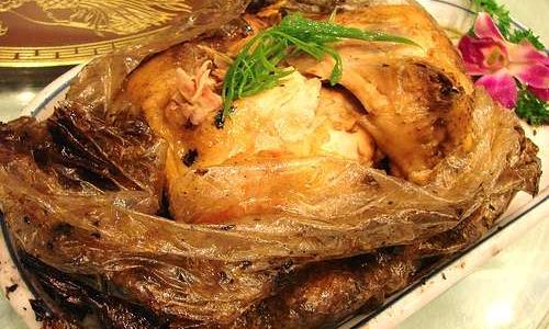 叫花童鸡是浙江省杭州市的特色传统名菜之一,是1956年浙江省认定的36种杭州名菜之一。它采用具有地方特色的越鸡、绍酒、西湖荷叶,加上各种调味品烤制而成。先在鸡腹中填满佐料,然后用荷叶及箬壳包扎,再在外边裹上一层用绍兴酒脚、盐水调和的酒坛泥,放在文火中煨烧三四小时。到顾客食用时,整个泥团拿到餐桌上当着客人的面拆开。由于它是经密封烧烤的,保持了鸡的原汁原味,泥团中的名酒的香醇气味,经火烤后沁入鸡肉,一股清香在桌面上扑鼻而来,更增添了情趣。