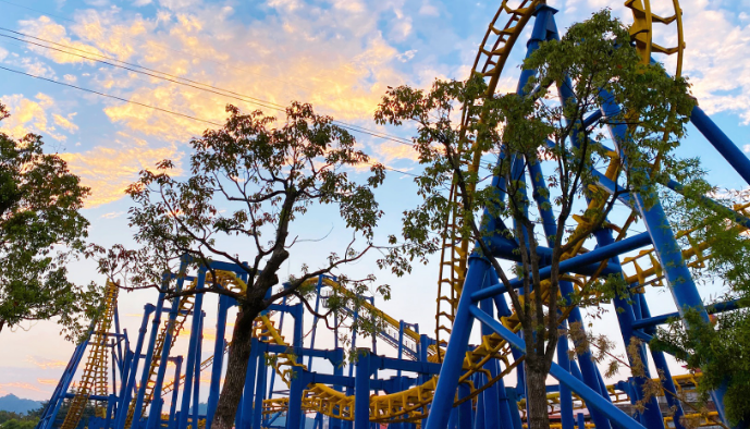 杭州乐园的铁塔式蹦极单是站在那高耸的跳台上都有些心惊胆战的地方,要从那跳下去真是勇敢者的游戏;游客弹跳时仿佛掉入无底洞,仿若整个心脏皆跳出,尤为惊险刺激。