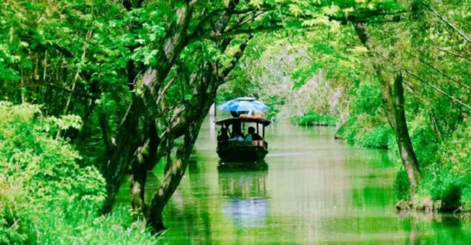 浙江杭州西溪国家湿地公园位于浙江省杭州市西湖区和余杭区西北部,距西湖不到5千米,规划总面积11.5平方千米,湿地内河流总长100多千米,约70%的面积为河港、池塘、湖漾、沼泽等水域。湿地公园内生态资源丰富、自然景观幽雅、文化积淀深厚,与西湖、西泠并称杭州“三西”。是中国第一个集城市湿地、农耕湿地、文化湿地于一体的国家级湿地公园。