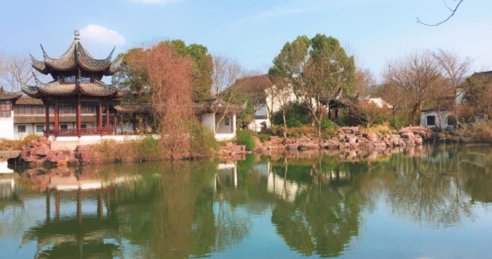 明末清初钱塘人邹孝直(名师绩)的庄园。当时这一带芦苇丛生,野趣盎然,从高处远远望去,整片庄园似仙岛泊于水上,因此得名。其中自在堂、空明轩两组建筑与拈花舫前后呼应,由南向北分别构成三个空间。