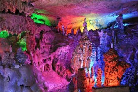 它原是距今100万年的一段古老地下河道。洞分3层:上层高于中层8~12米,残留的痕迹尚可辨认;下层距中层10~15米,是仍在发育的地下河道;现供游览的是中层。中层长1100米(游程814米)最高27米,最宽50米,最窄仅容单人通过,面积1.75公顷。全洞构成一条珠串状的地下长廊。