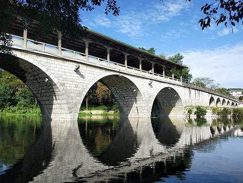 花桥位于桂林七星公园小东江与灵剑溪汇流处,宋代已有此桥,石砌五孔,桥式和桥亭大致与现在的水桥部分相同。
