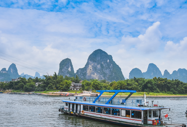 杨堤坐,杨堤位于漓江西岸的鸳鸯滩下,距桂林约50公里处。这一带风光是漓江胜景的精华所在。桂林,简称桂,是国务院批复确定的国际旅游胜地、国家可持续发展议程创新示范区;联合国世界旅游组织亚太旅游协会旅游趋势与展望国际论坛永久举办地。