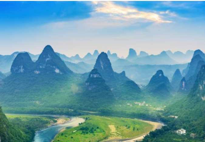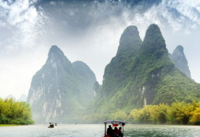 小学语文课本有篇“桂林山水甲天下”指的就是游漓江。漓江的两岸山峰伟岸挺拔,形态万千,是桂林风光的精华。全程具有代表性的景观有九马画山和黄布倒影,新版人民币20元背面,就是指的黄布倒影的景观。