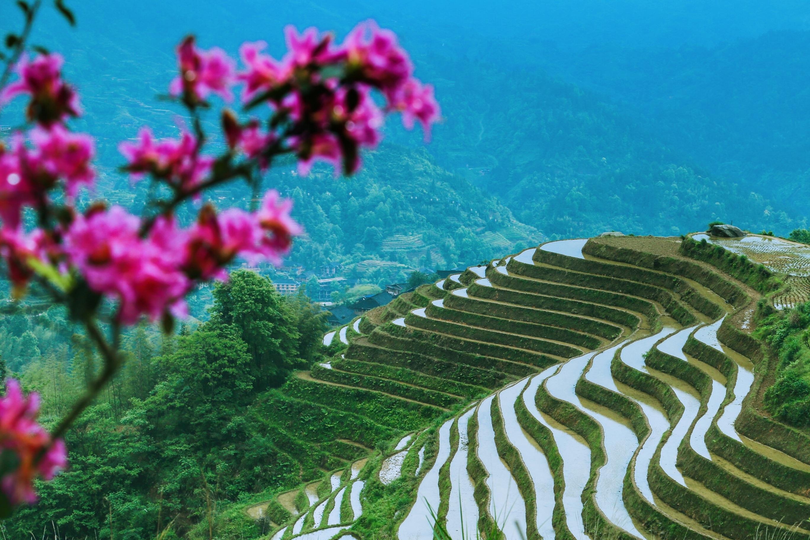 一、龙脊梯田龙脊梯田,是指在龙脊山上开发出的梯田,从广义说叫做龙胜梯田,从狭义上称为龙脊梯田。位于广西龙胜县龙脊镇平安村龙脊山,距县城22公里。距桂林市80公里,处东经109°32'~110°14'北纬25°35'~26°17'之间。龙脊梯田,通常意义上的是指龙脊平安梯田,也是开发较早的梯田,分布在海拔300米至1100米之间,最大坡度达50度,前往梯田几乎都是盘山公路,一直升到约海拔600米以上,到梯田时海拔达到880米。