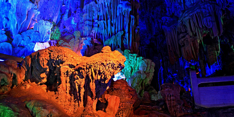 芦笛岩位于桂林市西北的桃花江畔,是离市区比较近的一个知名溶洞。洞内有大量玲珑剔透的石笋、石乳、石柱、石幔、石花,犹如壮丽的地下宫殿,比较美的部分在“水晶宫”,老版《西游记》曾在此拍摄取景。