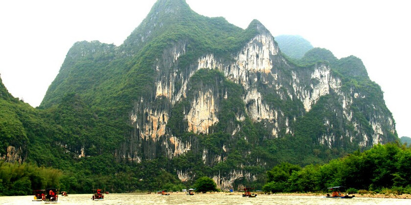 漓江竹筏漂流包括码头接驳车的成人票价格135元,漂流路段从兴坪到九马。