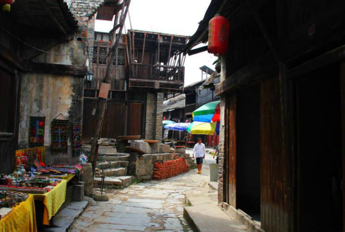 一、熊村,二、朗梓古寨,三、大圩古镇等。其中大圩古镇中的民居多为三进、四进式的明清建筑,青砖、青瓦的材料,临江依山而建,历史沧桑随处可见。房子的设计十分合理:每栋房子基本都是南低北高,集商、住功能于一身。