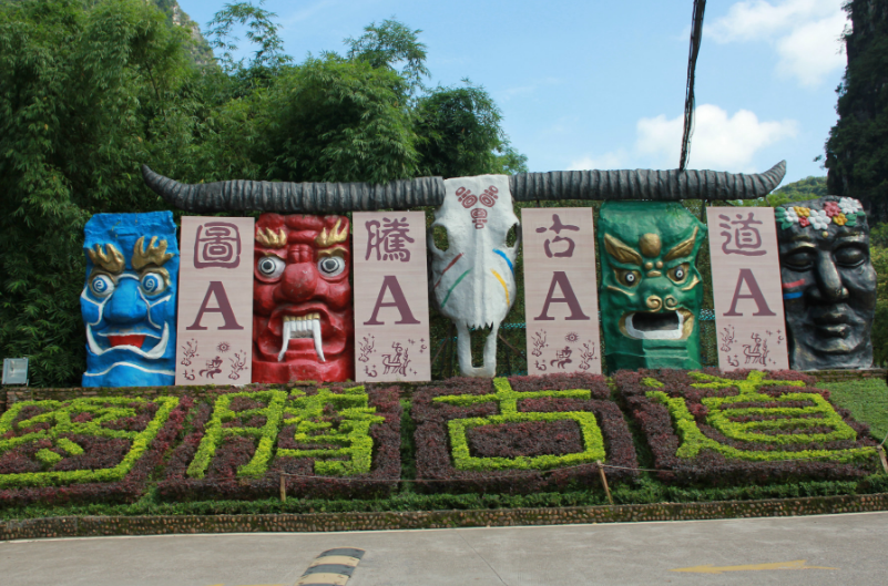 三、图腾古道图腾古道位于广西壮族自治区桂林市阳朔县著名的“十里画廊”中;景区展出的有石器、陶器、自然图腾柱、古老的弓弩,以及让人听不懂念念有词充满野性诱惑的肢体语言等原始生活场景,再现了12000--7000年前桂林先民居住、生活、宗教、狩猎和甑皮文化的历史风貌。