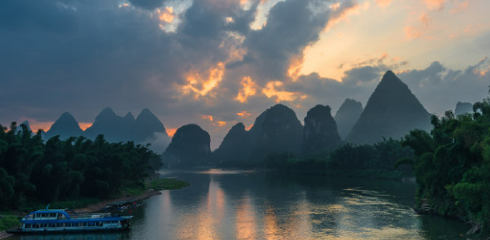 漓江旅游轮船;游客全程游览桂林漓江,不管是普通游船还是星级游船起点都是从桂林磨盘山码头或者是竹江码头上船,每天早上九点半开始登船,漓江最精华的地方大约有64公里左右,船行用时三个半小时,船上准备有丰盛免费的中,想品尝漓江鱼、漓江虾、就得要自费,下午一两点钟到阳朔码头下船。