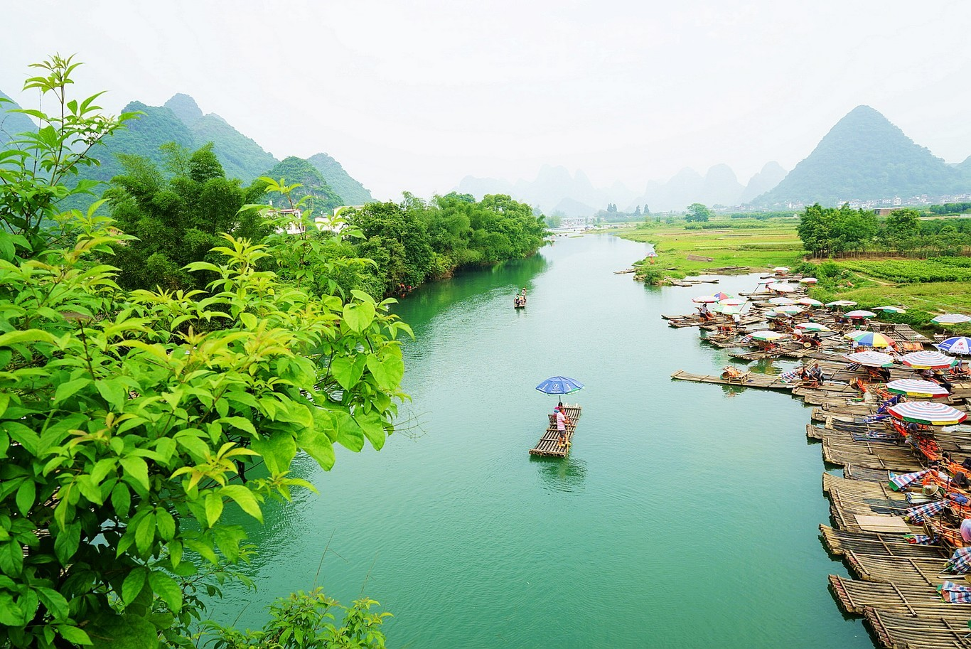 在阳朔,无论做什么,骑行、漫步、顺水而漂……都能让你找到契合的释放点。在这绿水漫堤的地方,最重要的事,就是抛开束缚,放纵自己。追寻刘三姐的歌声,或停于阳朔古镇,闻三花,尝桂香,或什么都不做,静静地置身于这甲天下的山水画卷中。虽不似诗人挥毫泼墨,亦不是画家笔下如神,但立于江上,任谁思绪都是迷离的,宛如乘一叶扁舟,漂入一幅古卷,随水而流,轻烟飘渺,淡水微波。岂甘只做旁观者,惟愿沦为画中人。