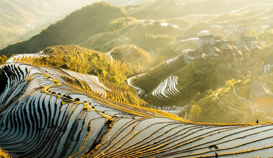 位于龙脊梯田景区内的大寨村,这里是红衣瑶族的村寨,因此又叫大寨红瑶梯田。相比龙脊的平安壮族梯田和龙脊古壮寨,金坑梯田更为原生态,梯田景观也更为辽阔和壮美,这里拥有的日出与日落的观景点。