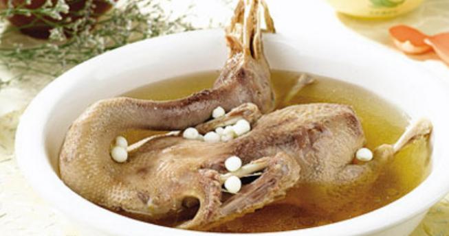 传统滋补菜,采用桂林特产白果、老鸭切块、火腿片及各种配料,放入炖盅上笼火蒸而成。其特点是鸭肉鲜香、白果滑嫩、汤清味浓。