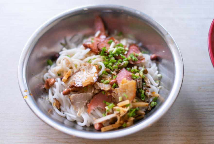 桂林米粉是广西桂林地区历史悠久的特色传统名小吃,以其独特风味远近闻名。其做工考究,先将上好的早籼米磨成浆,装袋滤干,揣成粉团煮熟后压榨成圆根或片状即成。其特点是洁白、细嫩、软滑、爽口,其吃法多样。