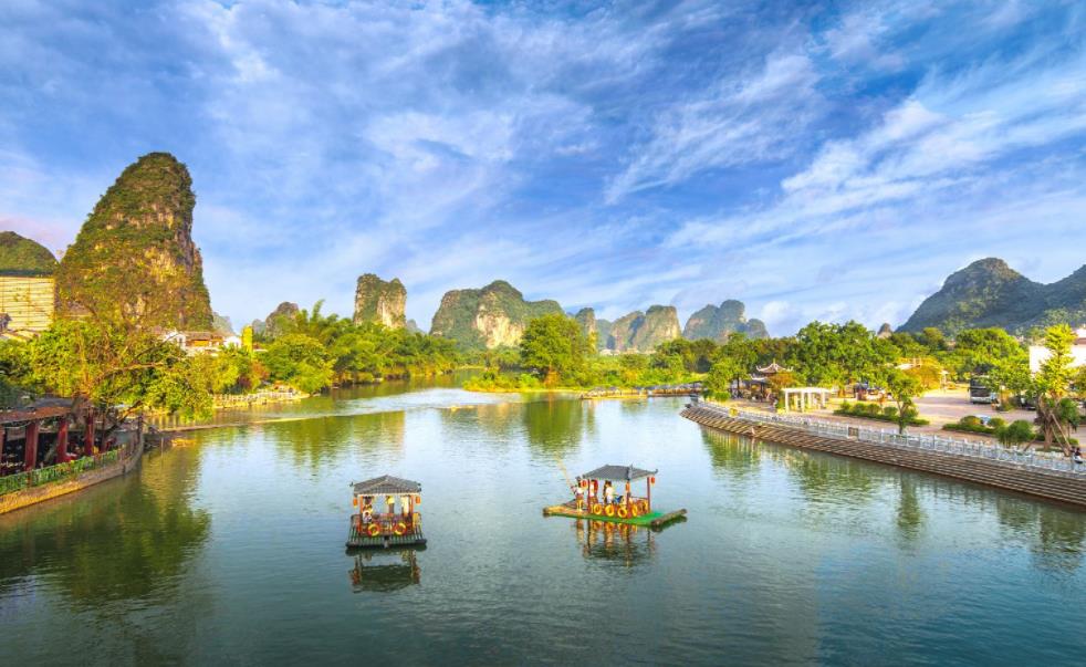桂林的游船直接到阳朔(枯水的时候游杨堤-兴坪段),中间不能下船,也不停船;没有阳朔到桂林的返航船。从桂林到阳朔最好乘船,有兴趣的可以步行,慢走两天。同时不要忘了带相机,这里的景色非常漂亮的。