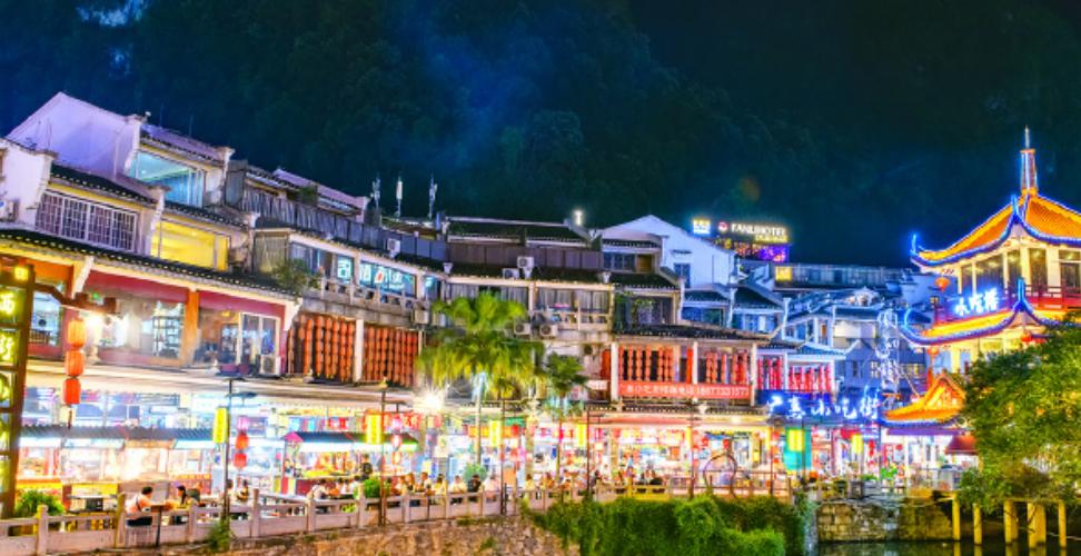 阳朔西街位于广西阳朔县城中心,全长517米,宽8米,大理石路面,呈弯曲的S形,房屋建筑古色古香,地方特色浓厚。荟萃各种旅游纪念品、小吃于街市。其充满了异国情调的夜景更是风情万种,风俗浓郁。