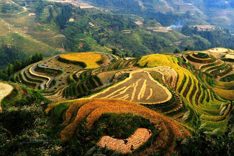 桂林进入到秋季之后,随处都散发出桂花的香味,呈现出来的画面完全与众不同。此时秋高气爽,天空湛蓝,还有晴空万里的陪衬,尤其是龙脊梯田画面很丰富。