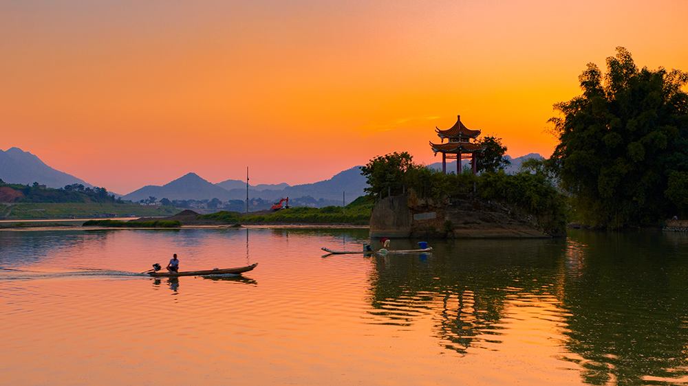 平乐印山亭位于广西平乐县平乐镇西面马河的三江回合处的江中小岛上,印山亭就是三条龙要抢的龙珠。为平乐古景之一,因其特别位置,亦为桂江首景。山入水,水露山,亭于山巅,妙不可言,游客至此,无不折服,真是:谁道凭虚不可楼,波心一点柱中流。