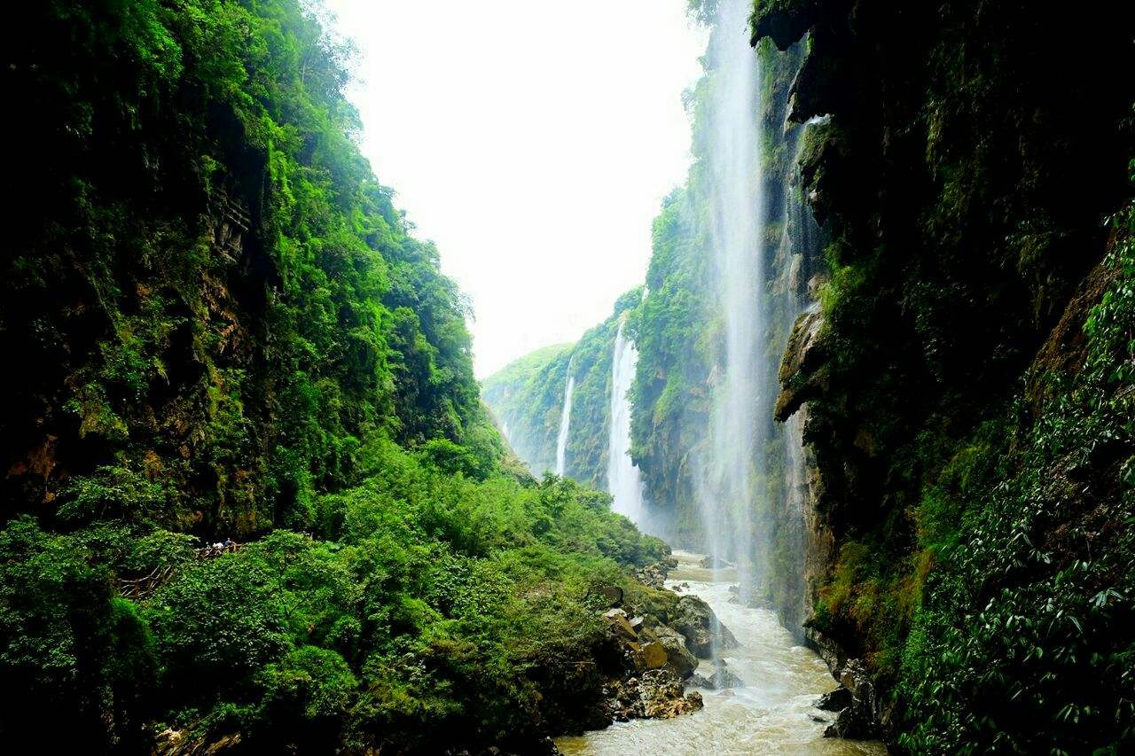 马岭河峡谷风景名胜区包括马岭河峡谷、万峰林、万峰湖三部分。中心景区距兴义城区6公里,地处滇、黔、桂三省区结合部,景区内瀑布群,中心景区内的30余道瀑有的壮如银河缺口,有的柔弱若婀娜仙子;瀑群凌空而降,飞珠溅玉,阳光下的道道彩虹,与深谷幽境相映,置之其中似人若仙。