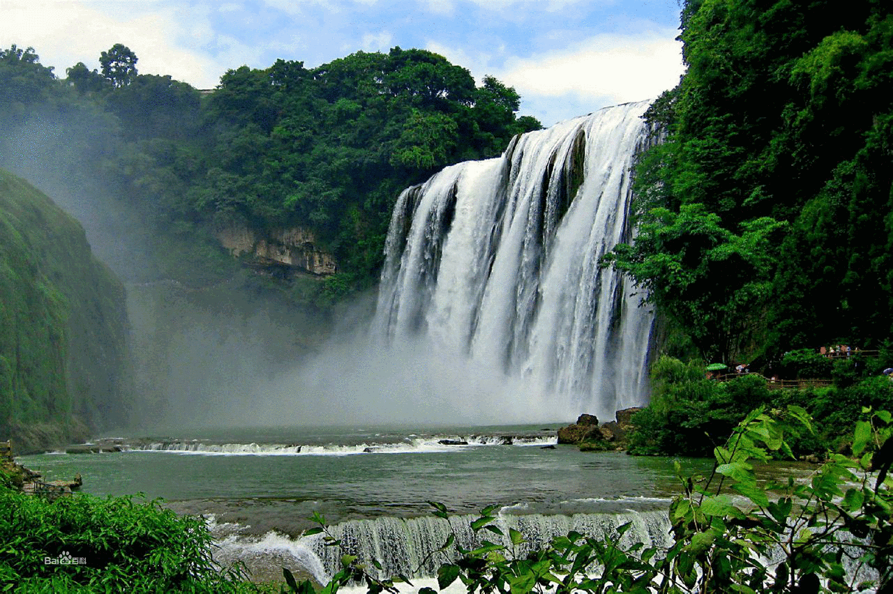 黄果树瀑布位于贵州省安顺市镇宁布依族苗族自治县,是中国和亚洲第一大瀑布,也是世界上最富盛名的大瀑布之一。它的出名始于明代旅行家徐霞客,后经过历代名人的游历、传播,成为知名景点。黄果树瀑布以水势浩大著称,奔腾的河水自悬崖绝壁上飞流直泻犀牛潭中,白练落潭,彩虹冲天,惊心动魄。周围岩溶广布,河宽水急,山峦叠嶂,气势雄伟,历来是连接云南、贵州两省的主要通道。