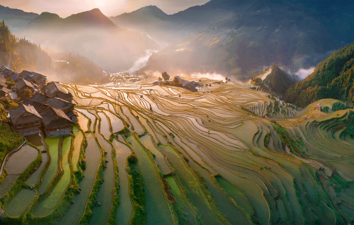 加榜梯田最佳观赏时间为:4-5月和8-9月。