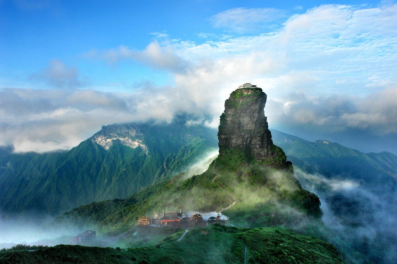 梵净山位于贵州省铜仁市,梵净山得名于“梵天净土”,是中国少有的佛教道场和自然保护区,与山西五台山、浙江普陀山、四川峨眉山、安徽九华山齐名中国五大佛教名山。