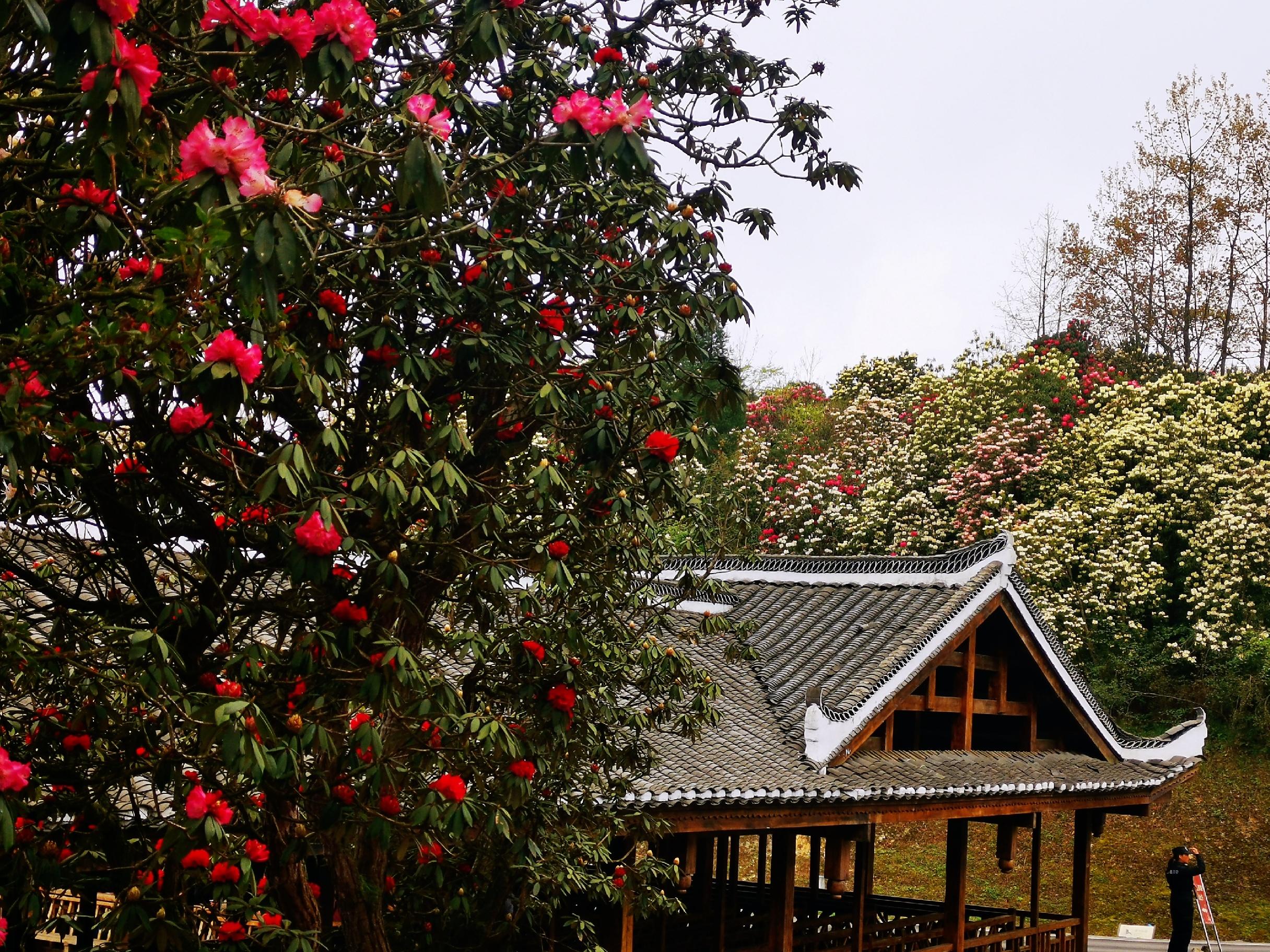 在3月下旬至4月末时,花开得最盛,杜鹃花满山开花、姿态万千、千姿万彩、五彩缤纷。整个花期将持续到5月。游人能够充裕地欣赏各种各样的杜鹃花。