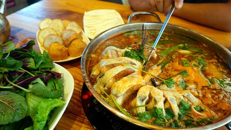 传说很久以前在黔东南苗岭有一山寨,寨老年迈体胖,爬坡下坎十分吃力。一次,儿媳煮饭时,不慎多放了些水,于是就把多余的热米汤舀在一个土缸里。四五天后,米汤经发酵后变得清彻透明,并略带酸味,用来煮鱼,其味鲜美异常,寨老一家吃得津津有味,从此儿媳便常用这种酸米汤煮鱼,长此以往,寨老渐觉身轻体健,上山下坡不再费力。这事很快传遍苗岭山寨,家家竞相效仿,“酸汤鱼”由此传开。此菜由黔东南传入贵阳,在贵阳迅速发展并发扬光大,名扬海内外。民间通常采用边煮边食的火锅形式,配以其他新鲜蔬菜,使其营养更为丰富。特点是鱼鲜肉嫩,色泽靓丽,酸辣爽口,汤清味美,开胃消暑,提神养颜。