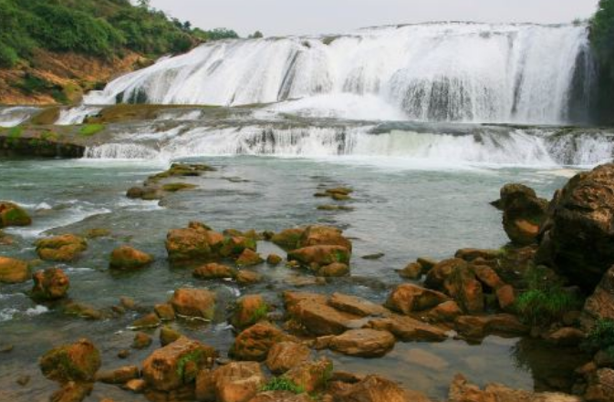 陡坡塘瀑布是黄果树瀑布群里瀑顶最宽的瀑布,瀑布水沿着瀑面倾泻而下,声势浩大,场面蔚为壮观,令人惊叹。运气好的话还可以看到美丽的彩虹。这里也是86版电视剧《西游记》片尾曲的取景地。