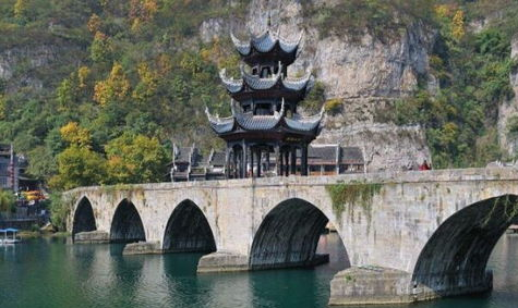 小七孔被誉为“小九寨沟”,是荔波必看景色之一,因响水河上横跨着一座青石砌成的七孔拱桥,故而得名。
