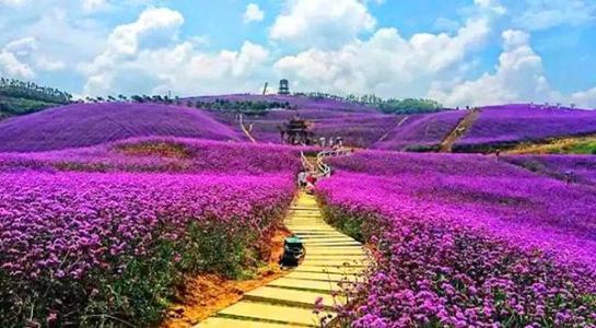 是我国唯一建在世界自然遗产地核心景区中的观花景区,位于大、小七孔景区中部,素有“大小七孔中心花园”之称。花海之中的“香草园”里大片的马鞭草、薰衣草、兰花鼠尾草等值盛开之季时,紫色的花朵娇艳绽放,置身紫色的花海,一阵山风拂过,香气袭人。