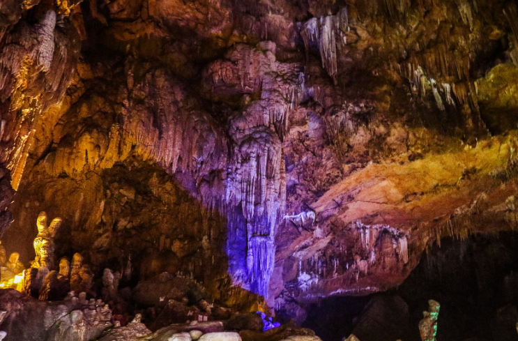 五、天星洞天星洞在天星桥景区中段,主要由八八桥,回望石,狭石桥,天星洞,冒水潭等景观组成。天星洞曾经是一条地下暗河,后来由于排泄面的降底,流水改道,这里使形成了一个没有水的地下溶洞。