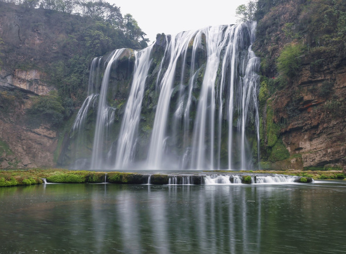 黄果树瀑布是中国最大的瀑布,也是世界最著名的瀑布之一,以水势浩大著称。瀑布高度为77.8米,其中主瀑高67米。瀑布宽101米,其中主瀑顶宽83.3米。属喀斯特地貌中的侵蚀裂典型瀑布。