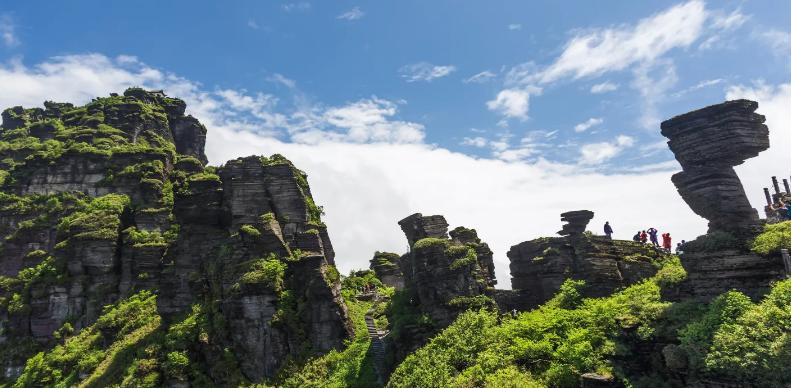 梵净山景区信息贵州梵净山被称为“贵州第一名山”、“武陵第一峰”,是国家级自然保护区,更是全国著名的弥勒菩萨道场和中国第五大佛教名山之一,在佛教史上具有重要的地位。梵净山山高峻险,有着“一山四季”的气候特点和丰富的动植物分布,罕有地保存了亚热带的原生生态系统,至今仍生存着部分世界独一无二的动植物,如数量比大熊猫还要少的“黔金丝猴”、恐龙时代的植物“珙桐”等,目不暇接的景点更是令游客叫绝。