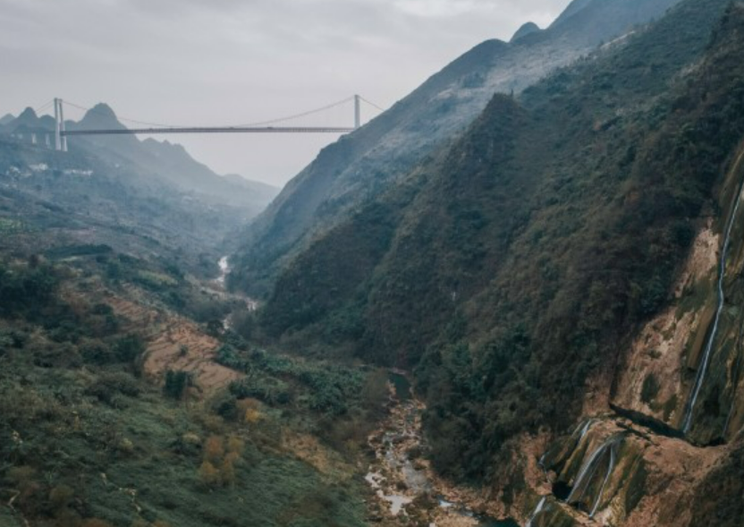 坝陵河大桥跨越坝陵河峡谷两岸,东接壮美的黄果树大瀑布、西临三国索马古道、南毗神秘的红崖天书、北靠滴水滩瀑布,这一世界级的桥梁,成为安顺又一道瞩目的风景。