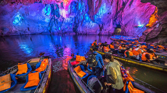 导游大七孔因进入景区的一座大七孔古桥而得名。以原始森林、峡谷、河流、地下湖为主体,景区内还有一座大自然鬼斧神工凿造而成的天生桥。距小七孔鸳鸯湖景区约5公里。小七孔小七孔风景区以精巧、秀美著称,景区有著名的七孔古桥、68级响水河瀑布、拉雅瀑布、龟背山原始森林、野猪林漏斗森林、天钟洞、卧龙河生态长廊等景点,更有掩映在森林之中的鸳鸯湖、长约700米的“水上森林”等。水春河峡谷水春河风景区全长6公里,是樟江风光最为秀丽的一段,以布依族古寨水春寨而得名。源起月亮山原始森林,向西流经荔波县城。水春河以险峰、峭壁、滩急、密林而独具一格。景区内的水春河峡谷漂流,将近3个小时,历经29道浪,到龙王洞才结束。樟江位于黔南布依族、苗族自治州的荔波县境内,距贵阳市314公里,以岩溶地貌所形成的山水为特色,是目前世界同纬度罕见的亚热带喀斯特原始森林残存区。樟江风景区由大七孔、小七孔、水春河峡谷三个景区组成。餐饮/住宿/购物进入景区的大门口有几家旅馆,比景区内的便宜,可以考虑住在景区门口。但是如果要入住此处,必须用门票在小七孔出口处进行登记,第二天进入景区时才不再重复购票。