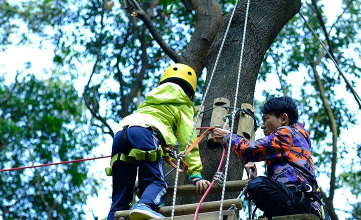 是一项在树上进行的探险项目,集冒险、运动、娱乐、挑战于一体的户外运动项目。园区拥有儿童蛛网、绿线、蓝线、红线、黑线5条游玩线路,由易到难适合不同年龄人段的人游玩。