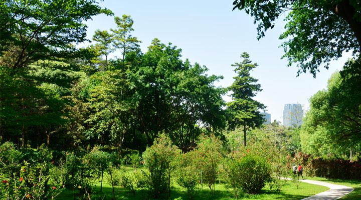 再往前行,是果香园。果香园是在原果树科学研究所的基础上补植了一些新果树形成的,荔枝、芒果、杨桃等种类繁多,可以品尝。前面那座建筑叫静心台,是供游客休息的地方。