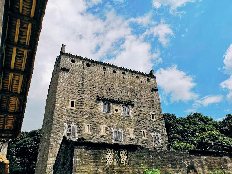 凤凰古围里的建筑更接近客家古围,这也是它“凤凰古围”名字的由来。如果从高处俯瞰,可以看到村子里的房屋排列十分规整,横纵成行成列,井井有条,四周被围楼或围墙包围起来,平面呈方形,呈现完整的客家围村的风格。