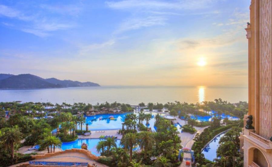 整个度假区为统一的海洋风格,内部设有10个珍稀动物展馆、9项动感游乐设施、3个大型剧场表演等。