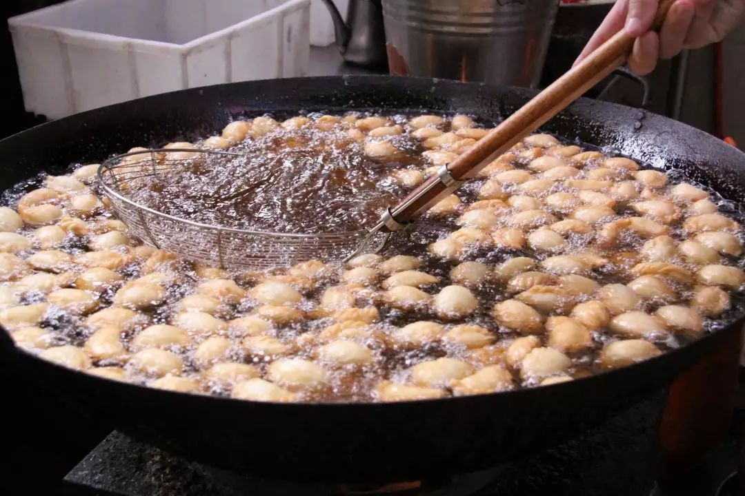 煎堆俗话说“煎堆碌碌,金银满屋。”广东煎堆更是品种多样,除了“圆碌碌”之外,还有扁扁的九江煎堆,空心的龙江煎堆等等。