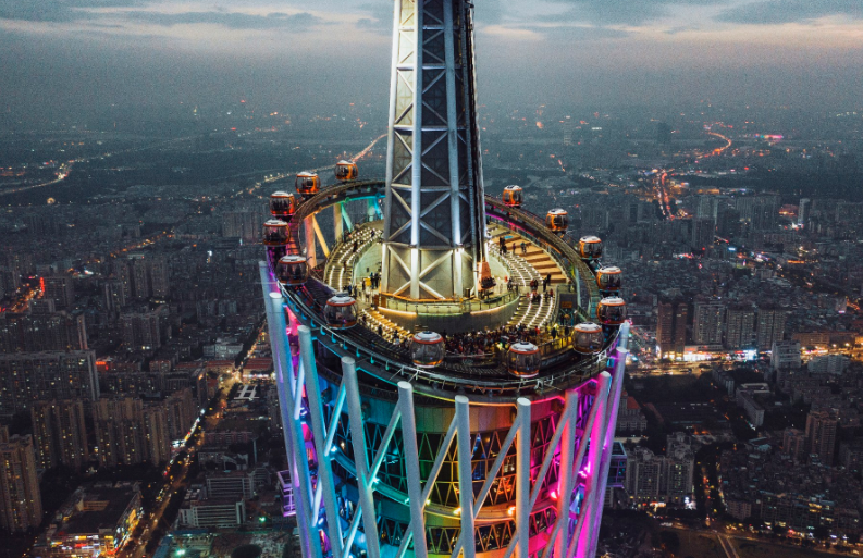 五、广州塔广州塔是国家AAAA级旅游景区,世界第三、中国第一高塔。塔基部分为介绍广州历史、文化、经济和旅游景点等展示功能,并设置旅游服务配套设施;塔冠部分设置餐饮、娱乐功能及观景平台。