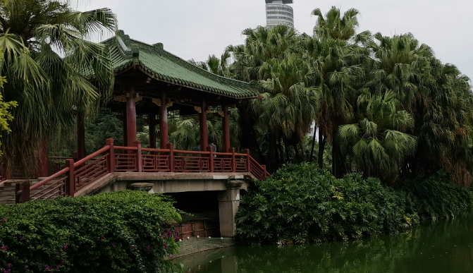 红桥葵堤是流花八景之一“虹影葵风”,建于20世纪的50年代末,位于公园的中轴线;它是广州市目前最长、最直、最有特色的一条葵堤,现为广州市历史保护建筑。