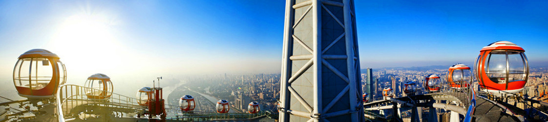 广州新电视塔摩天轮主要由观光球舱、轨道系统、登舱平台、控制系统等构成。游客的登舱平台将分设上、下客区,边缘将设置可随球舱移动的1.2米高安全移门,以确保游客游览的有序和安全。每个观光球舱直径3.2米,可“装”4~6名乘客;球舱壳体采用新型高分子材料,晶莹剔透,能保证舱内游客对塔外景色一览无余。