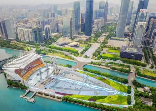 花城广场被誉为广州“城市客厅”,是广州市最大的广场,2010年10月25日起全面向市民开放。该广场位于广州市城市新中轴线珠江新城核心节点,东起冼村路,西至华夏路,北靠黄埔大道,南临海心沙。