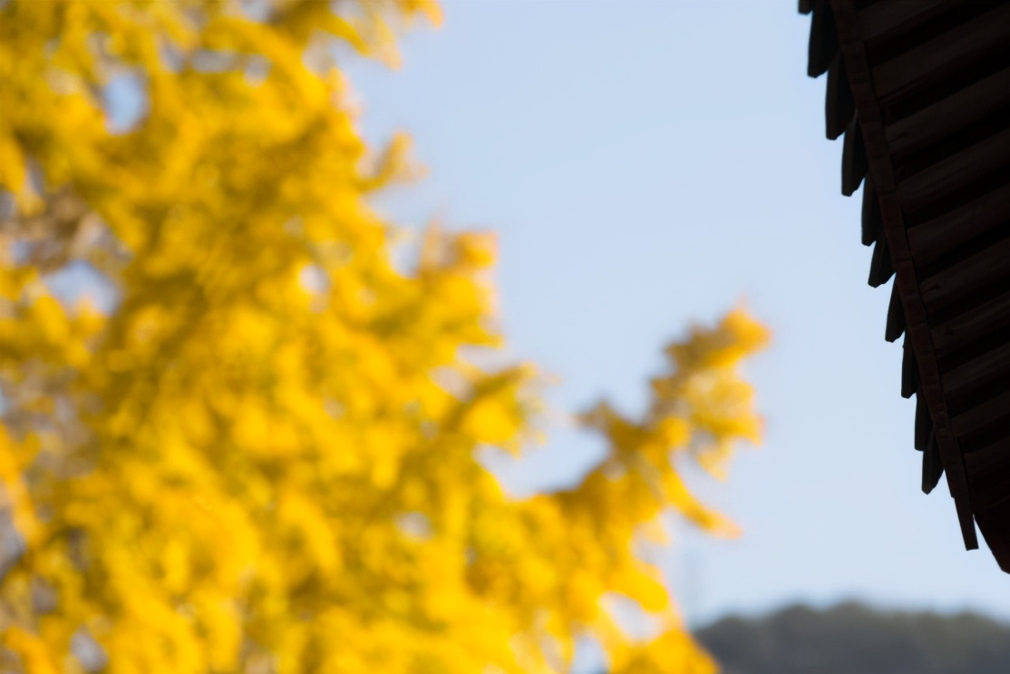 很多时候,不需要拍摄银杏树的全貌,只选取枝杆造型独特的一角,就可以展现出浓浓的秋意。