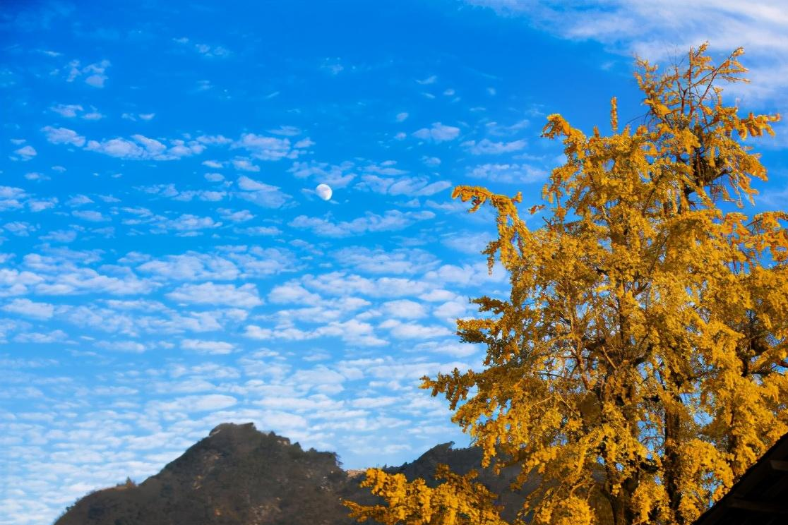 放眼望去,门前屋后、田野中、水塘旁,每寸美景早已与金黄的银杏树浑然一体。银杏它总以一种恬静淡然的神情,在深秋的最后残喘中释放自己婀娜的姿态。