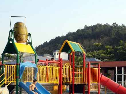(3)滑道池:水温35℃-37℃,具有3条不同类型的滑道,既可以寻找刺激,又可以浸浴温泉。水深1.2米。