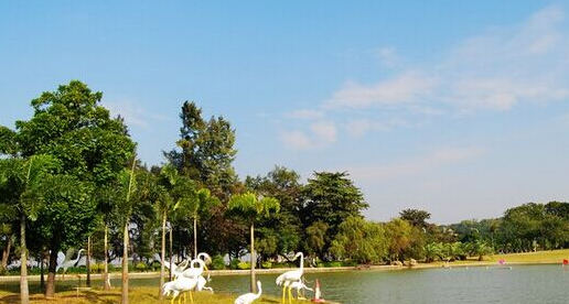 珠海海滨公园位于海滨南路与香炉湾之间,北起犀牛望月山,南至海景路,东至菱角咀,南距澳门5千米占用地13公顷。海滨路穿越海滨公园,北侧是石景山,南侧为香炉湾。珠海的标志“珠海渔女”雕塑就竖立在海滨公园的岩石上。海滨公园内林荫夹道,环境幽静,山景、海景浑然一体。为珠海增添生机。